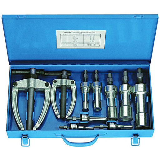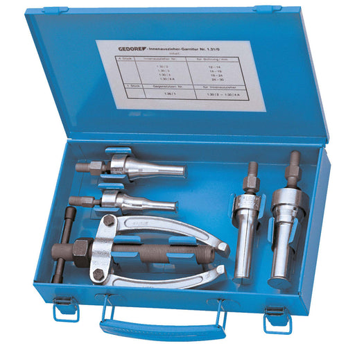Garnituren der gängigsten Innenauszieher und Gegenstützen zum Ausziehen von Kugellager, Ringen, Büchsen, Simmerringen® usw.Im stabilen Blechkast...