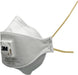 Flach faltbare Atemschutzmaske mit Bändern, zum Schutz gegen feste und flüssige Partikel sowie Feinstäube. Kompatibel mit Augen- und Gehörschutz.