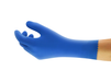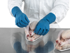 Ein wiederverwendbarer, blauer Handschuh aus Naturgummilatex ohne Trägermaterial, zugelassen für den Kontakt mit Lebensmitteln