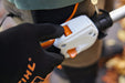 Der leistungsstarke EC-Motor ist so leise, dass Sie ohne Gehörschutz im heimischen Garten oder anderen lärmsensiblen Bereichen, beispielsweise um Schulen, bei Krankenhäusern oder in Stadtparks, arbeiten können. Eine variable Geschwindigkeitsregulierung mit 2 Stufen ist direkt am Bediengriff integriert. So können Sie komfortabel wählen: Im ECO-Modus (Stufe 1) arbeitet der Motor mit niedrigeren Drehzahlen, die für leichtere Anwendungen ausreichen. Dadurch haben Sie einen geringeren Energieverbrauch und können die Laufzeit des Akkus verlängern. Wenn Sie die volle Drehzahl benötigen, z. B. für Arbeiten mit der Kreiselschere STIHL RG-KM, schalten Sie einfach per Schiebeschalter auf Stufe 2 um. Je nach Anwendung können Sie zudem die Drehzahl stufenlos einstellen.
