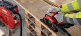 - Nahezu staubfreies Sägen – in Verbindung mit der mitgelieferten Vorrichtung zum Verbinden der Akku-Handkreissäge mit einem Hilti Staubsauger