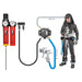 Druckluftgespeiste Atemschutzhaube zur Kombination mit 2-stufigen Druckluftfiltern an der Wand.