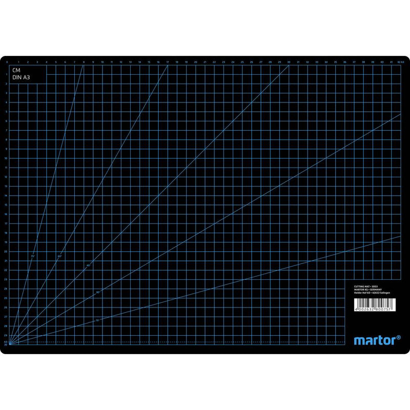 Schneiden, ohne den Untergrund zu beschädigen? Kein Problem. Bei Papier, Pappe, Folie etc. legen Sie am besten eine hochwertige MARTOR-Schneidmatte unter. Sie besteht aus drei Schichten: einem festen Kern und zwei widerstandsfähigen Außenflächen. So steckt sie auch kräftige Schnitte locker weg. Die Schneidmatte bleibt immer glatt und lässt Sie weiter sauber arbeiten. Auch hilfreich: der Rasteraufdruck in cm und Inch. Die MARTOR-Schneidmatten gibt es in fünf verschiedenen Größen, von sehr groß bis ganz klein. Je nach Anlass und Arbeitsumfeld finden Sie bei MARTOR also immer das passende Format.