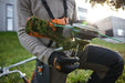 Serienmäßig ist diese Motorsense mit einem Grasschneideblatt 230-2 ausgestattet. In Verbindung mit dem ergonomischen Zweihandgriff (Mählenker) können Sie so große Grünflächen effektiv bearbeiten. Je nach Anwendung steht Ihnen eine große Auswahl an unterschiedlichen Schneidwerkzeugen und Mähköpfen zur Verfügung. Mit dem serienmäßig mitgelieferten Doppelschultergurt wird Ihnen ein ergonomisches Arbeiten auch über längere Zeiträume hinweg ermöglicht. Sie befestigen ihn einfach an der praktischen Einhängeöse, die Sie werkzeuglos an Ihre Körpergröße anpassen können. Für die Lagerung der akkubetriebenen Motorsense FSA 120 befindet sich am Gerät eine praktische Aufhängeöse.