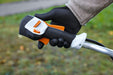 Für den leistungsstarken EC-Motor lässt sich über eine variable Geschwindigkeitsregulierung mit 2 Geschwindigkeitsstufen die Drehzahl direkt am Bediengriff einstellen. Im ECO-Modus (Stufe 1) können Sie bei niedrigeren Drehzahlen arbeiten. Bei leichteren Anwendungen verlängert sich so die Laufzeit des Akkus durch den geringeren Energieverbrauch. Benötigen Sie für das Mähen von Gestrüpp und dichtem Gras die volle Drehzahl, schalten Sie einfach per Schiebeschalter auf Stufe 2. Je nach Anwendung können Sie zudem die Drehzahl stufenlos einstellen.