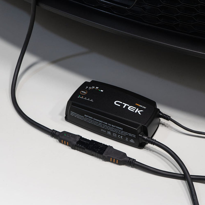 Easy-to-use LED charge status indicator for 12V batteries with clamps, for use with the PRO25 CIC charger. LED INDICATOR INDICATOR. The CTEK PRO INDICATOR CLAMP is a detachable charging cable with an easy-to-use LED indicator that allows you to quickly check the charge status of 12V lead-acid batteries. The robust and durable clamps ensure a secure connection to the battery. The easy-to-read LED indicator system shows the battery's charge status and therefore its charging needs. The CTEK PRO INDICATOR CLAMP is compatible with CTEK's PRO CONNECT system. It can therefore be quickly connected to a PRO25 CIC charger for easy battery access.