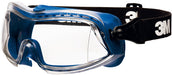 Leichte, schlanke Schutzbrille mit individuell einstellbarem Kopfband zum Schutz vor Schlägen, Staub, Partikeln und Flüssigkeiten.